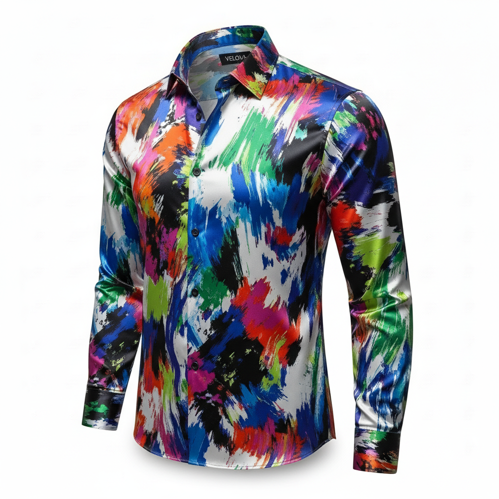 Velova Men’s Designer Party Shirt | Silky Abstract Print Button-Down